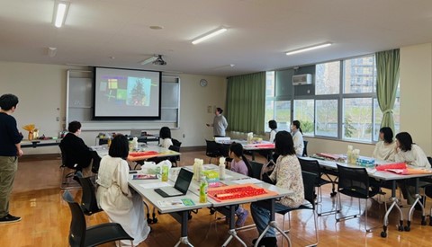 札幌販売士協会北広島支部はこのほど、北広島市で「2024年度第3回流通接客セミナー『クリスマスラッピング』」を開催し、親子連れら14人が参加した。日本販売士協会登録講師で同協会の菅原祐子理事が講師を務め、「斜め包み(デパート包装)」「合わせ包み(キャラメル包み)」「リボンフラワー」「ボトルラッピング」「リボンかけ」などのテクニックを動画に沿って解説。実際にデモンストレーションを行うとともに、参加者もラッピングに挑戦した。